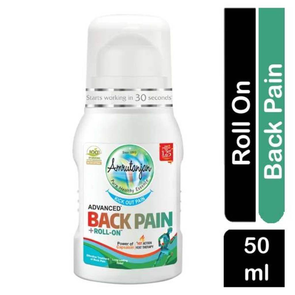 Amrutanjan Back pain roll on gives immense relief on the back pain. It gives a very pleasant heating sensation when rolled down into the skin and gives instant relief. Works great for occasional aches, pains, but sprains and headaches. Starts working in 30sec.*, 100% Ayurvedic No Diclofenac. So Twin Axis Roller ball technology. Bigger ball size for application on larger area. Safe on skin & stain free. Easy to hold and apply, deep penetration, unique formula for faster relief. Non messy hands,easy to carry