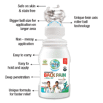 Experience the exceptional benefits of Back Pain Roll-on, but delivering advanced and fast relief in just 30 seconds. Crafted for optimal effectiveness, this 50ml roll-on provides targeted comfort, soothing back pain with ease. Its convenient size allows for on-the-go application, making it a versatile solution for your pain relief needs. So Say goodbye to discomfort and embrace the swift, expert relief that Back Pain Roll-on brings, ensuring a more comfortable and pain-free lifestyle.